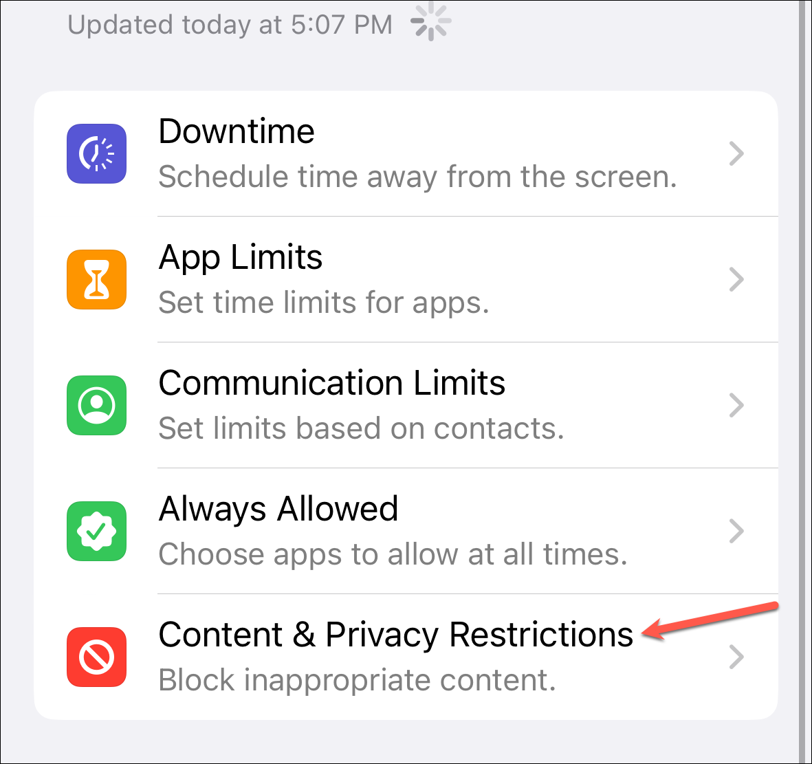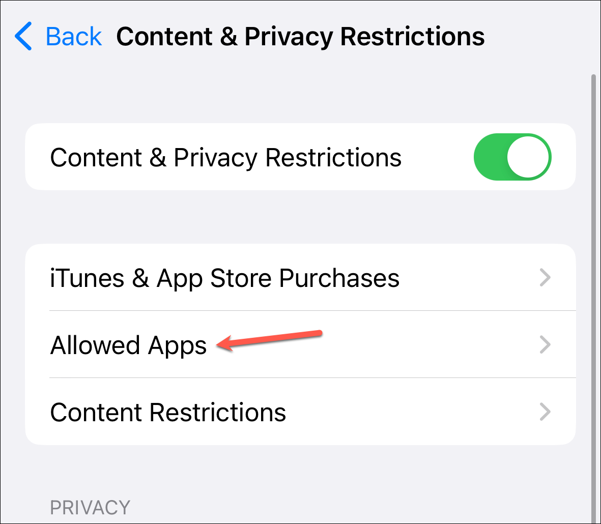 Then, go to 'Content & Privacy Restrictions'.