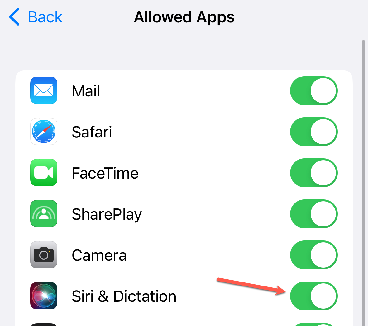 9. Turn Off Screen Time Restrictions for Siri & Dictation