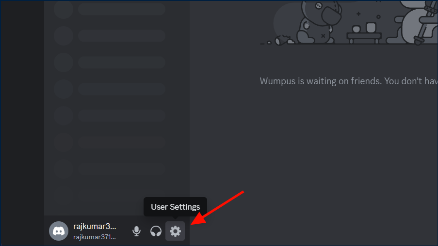 - Open the Discord app on your computer and click the settings cog icon (User settings) in the bottom left corner, next to your username.