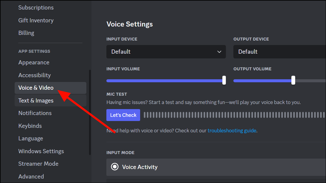 - Go to the 'Voice & Video' section on the left in the Discord Settings menu.