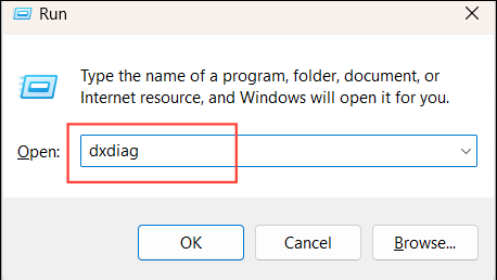 Windows+R, typedxdiagand pressEnter.