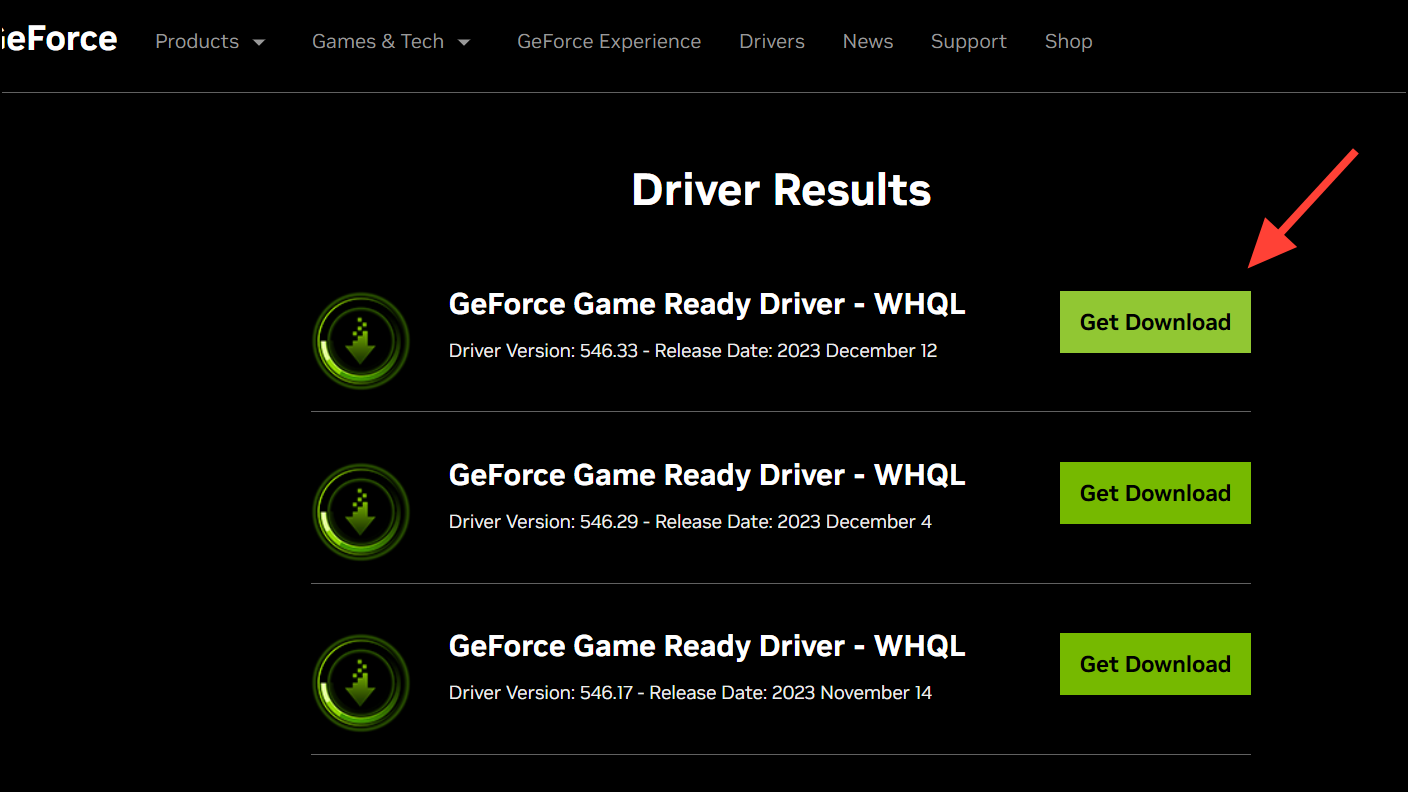- Then, click the 'Get Download' next to the latest driver version.