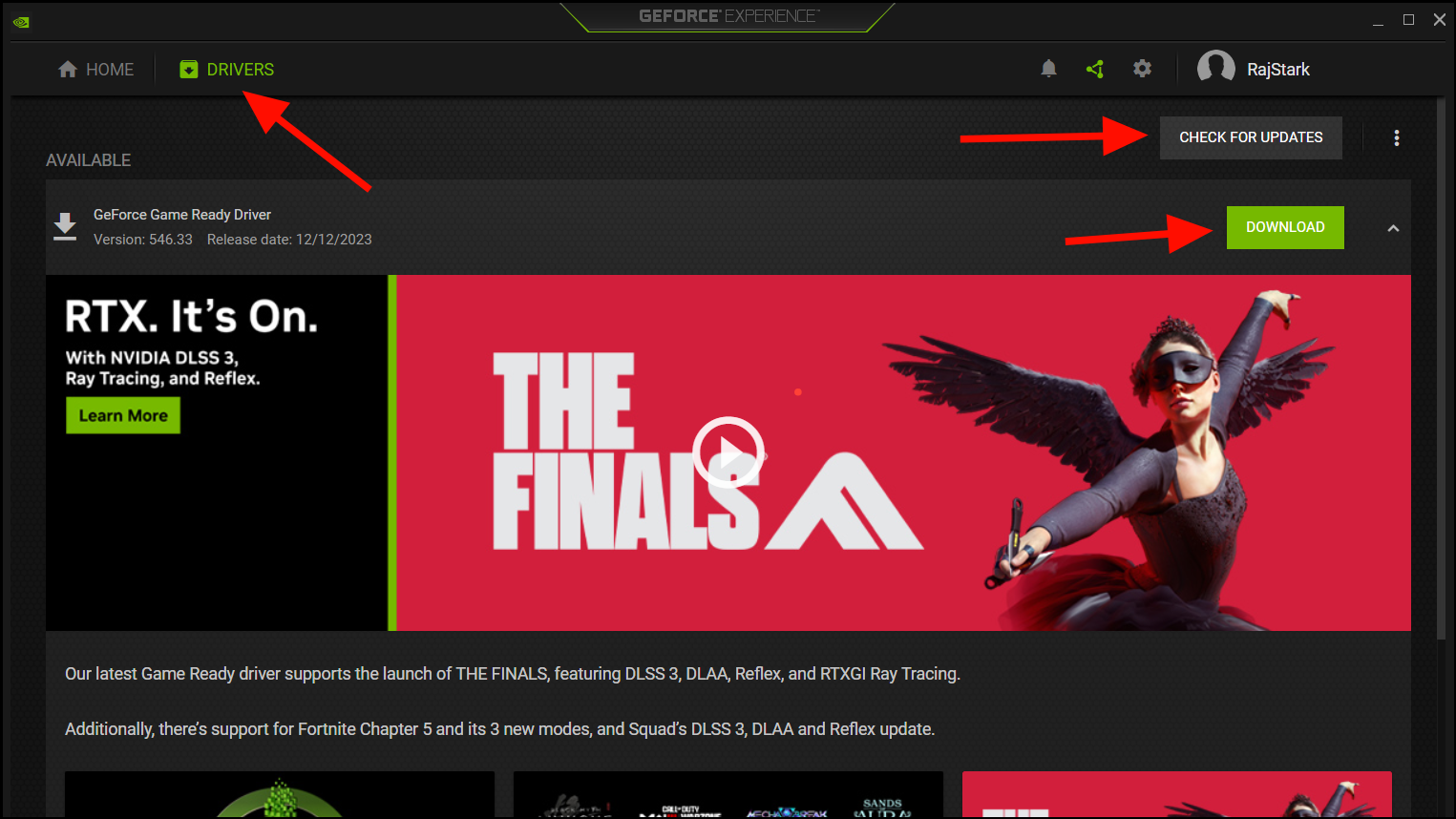 - Go to the 'Drivers' tab, and click the 'CHECK FOR UPDATES' button. If you have any updates, click 'DOWNLOAD'.