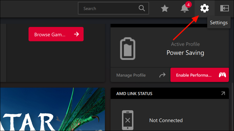 - Alternatively, you can open the 'AMD Software' app, and click the 'Settings' icon at the top left corner.
