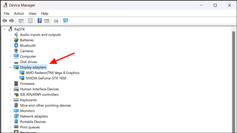 - In the Device Manager, expand the 'Display adapters' option.