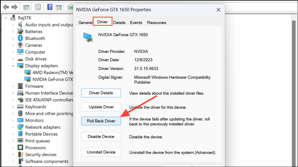 7. Rollback Nvidia’s Driver Update