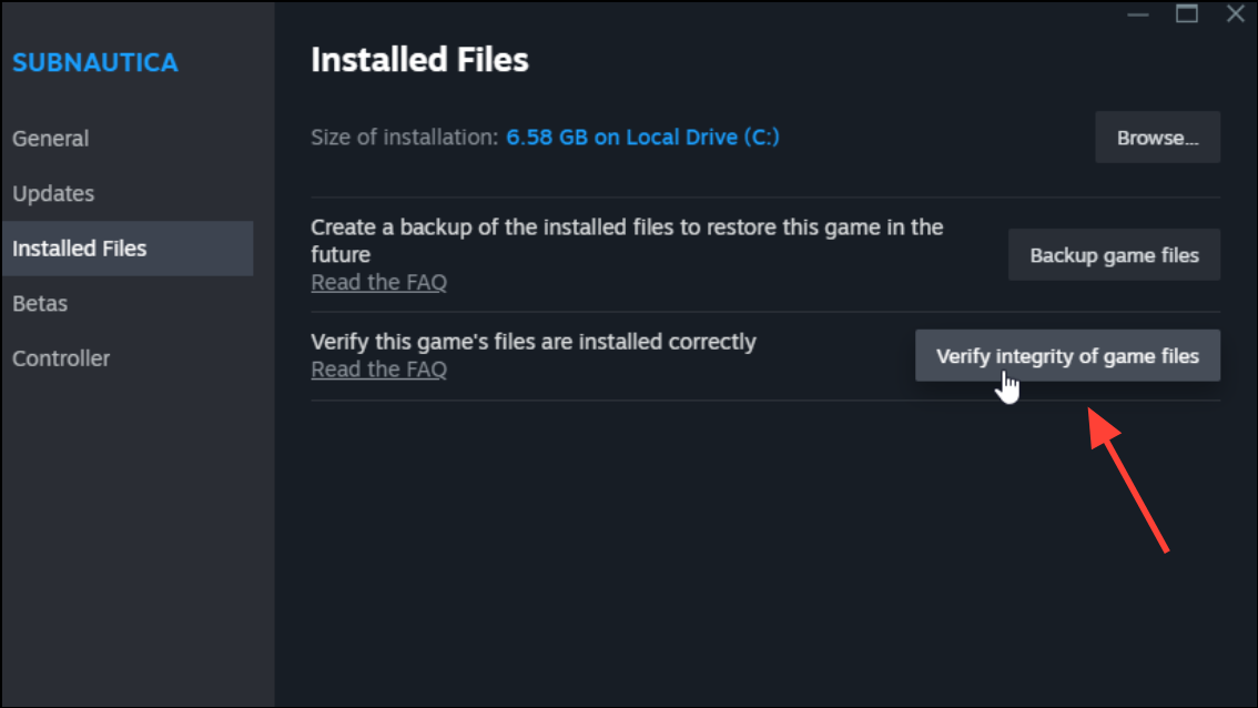 Step 1: In your Steam library, right-click the affected game and select “Properties.” Go to the “Installed Files” tab and click “Verify integrity of game files.”