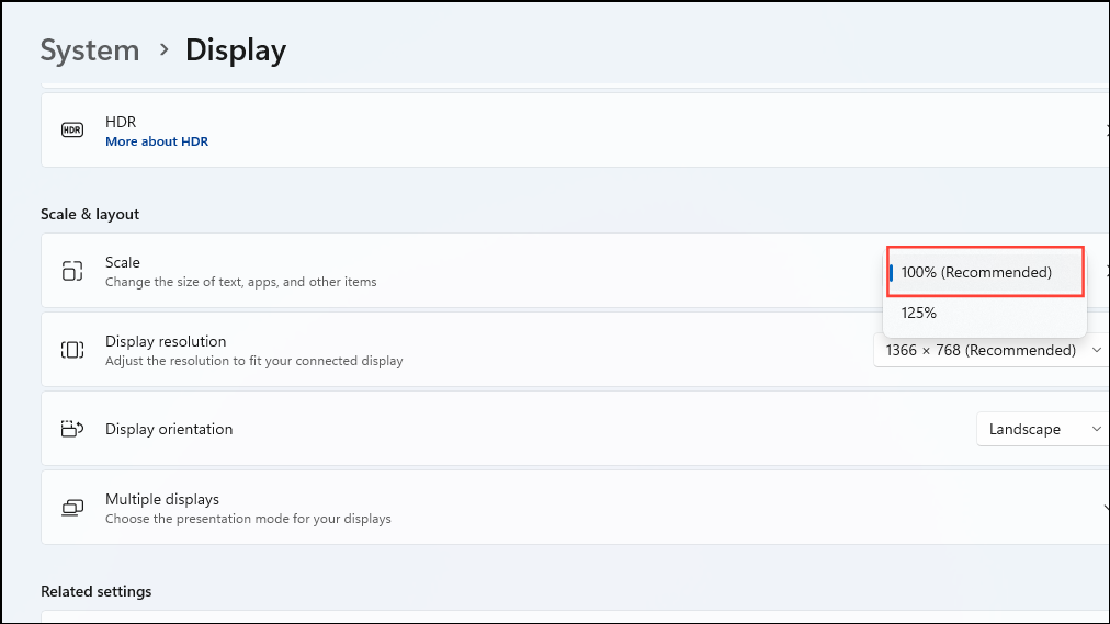 A wrong display scale is another reason you may not be able to change the display resolution on your Windows 11 computer. To fix this, you will need to set the correct display scale before you can adjust the display resolution.