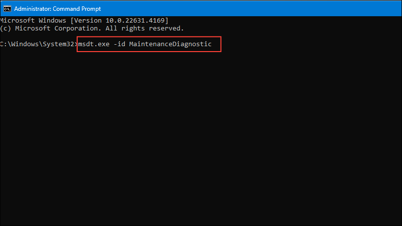 msdt.exe -id MaintenanceDiagnosticand press Enter.