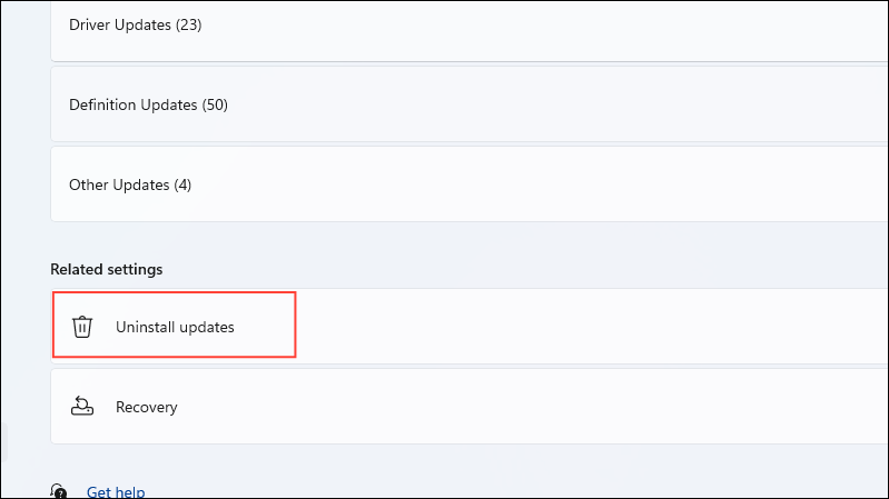 - Finally, click on 'Uninstall' on the right for the updates you want to remove.