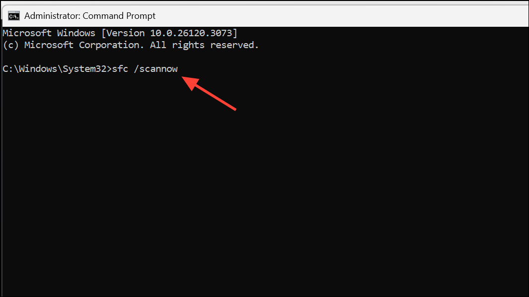 sfc /scannowin Command Prompt as an administrator to check for and fix corrupted system files.