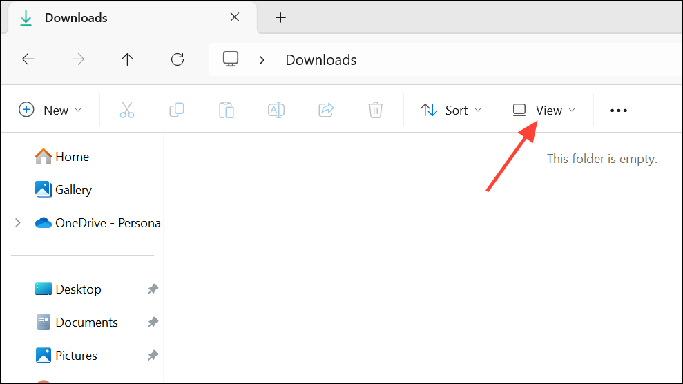 Step 1: Open the Downloads folder and click the View menu at the top.