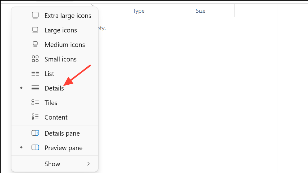 Step 2: Choose Details or List to avoid thumbnail previews.