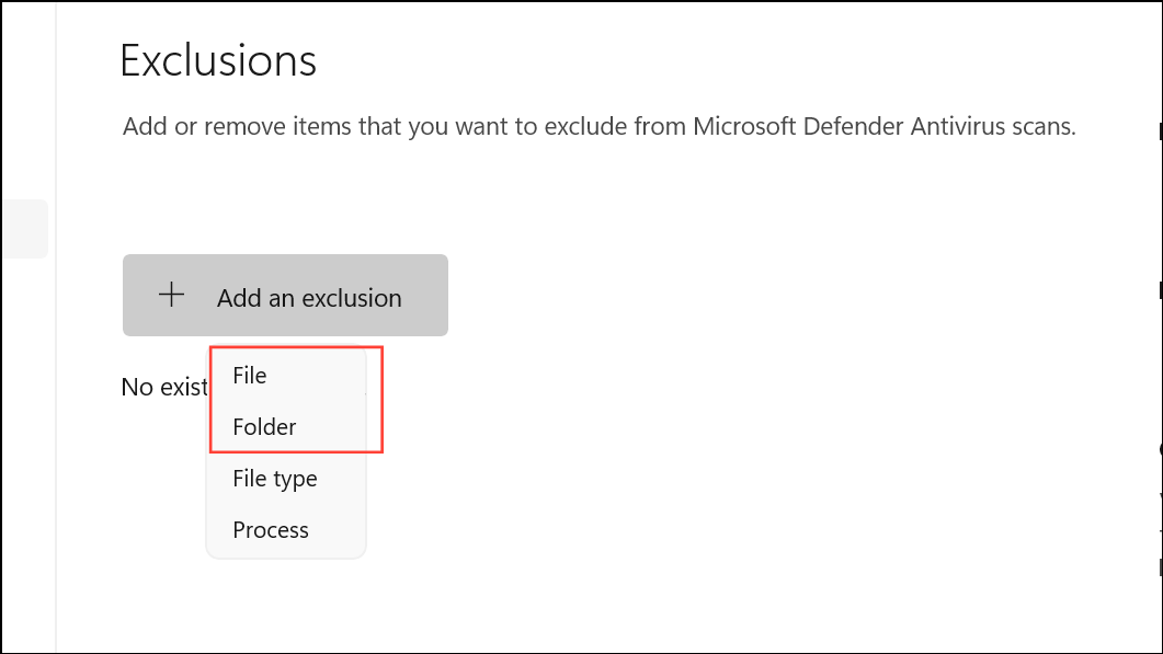 Step 2: Scroll down to Exclusions and click Add or remove exclusions. Click Add an exclusion and choose File or Folder. Browse to the DST.exe file or its parent folder (such as C:\DR0) and add it. This step prevents Defender from scanning or blocking DST.exe in the future.