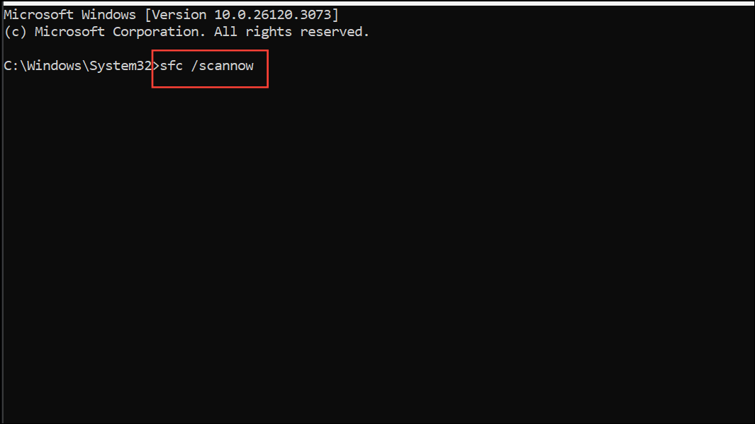Step 2: Type sfc /scannow and press Enter. Wait for the scan to complete and follow any instructions provided.