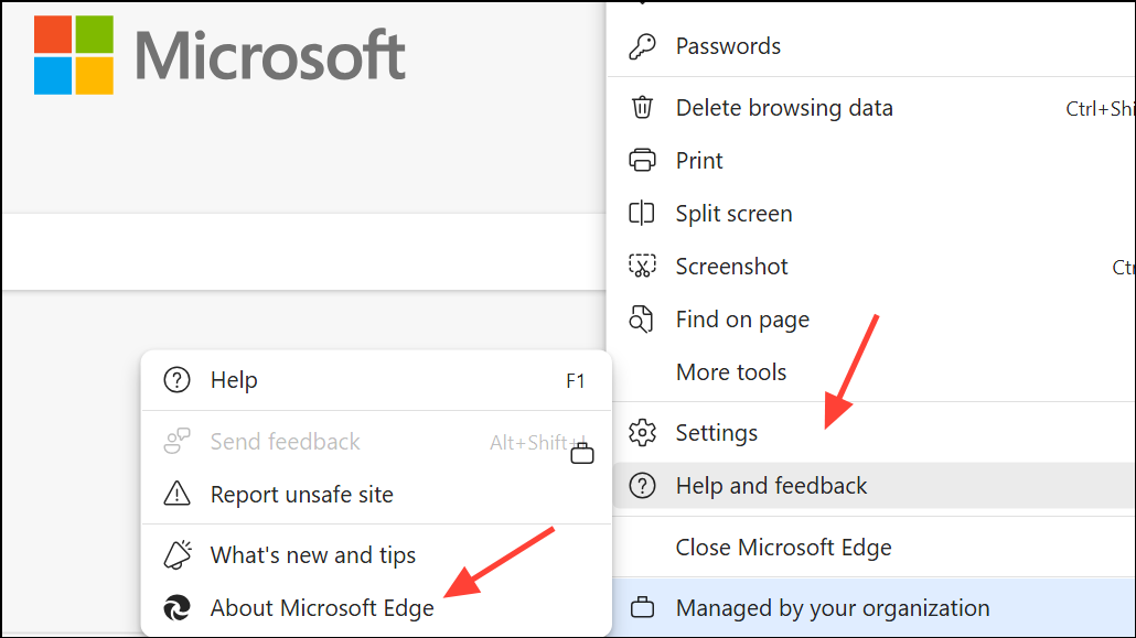 Step 2: Navigate to Help & Feedback > About Microsoft Edge. Edge will automatically check for updates and begin downloading if any are available.