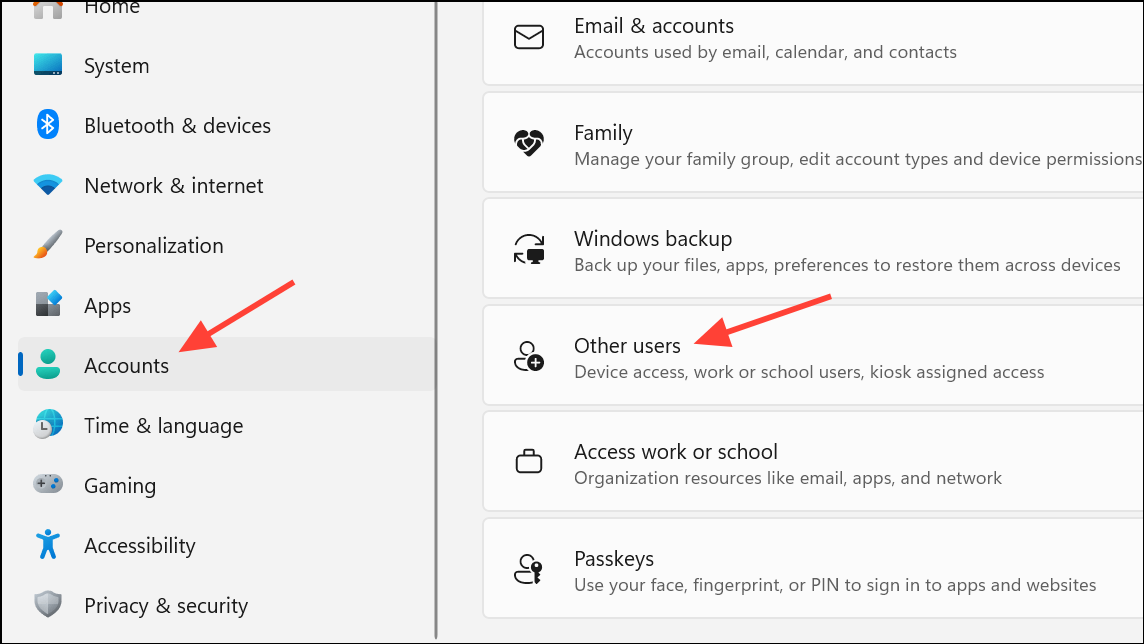 Step 2: Under Other users, click Add account and follow the prompts to create a new user.