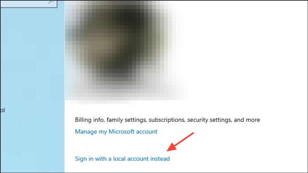 Step 2: If your account is listed under Family, consider switching to a local account or an adult Microsoft account. Click Your info and select Sign in with a local account instead to convert. Restart Windows after making changes.