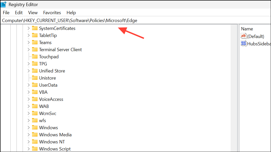 HKEY_CURRENT_USER\Software\Policies\Microsoft\Edge