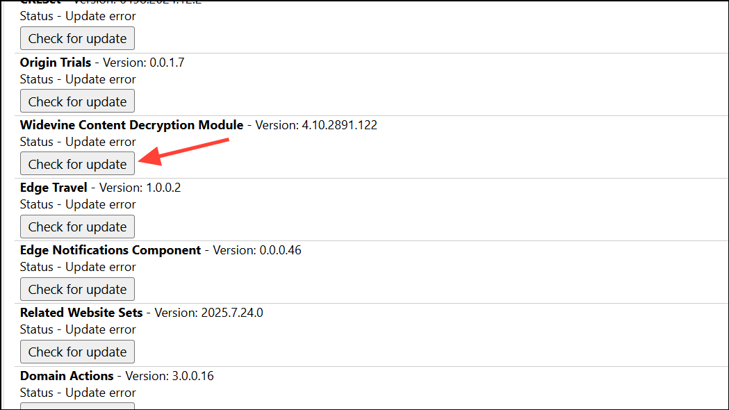 Step 2: Scroll to find "Widevine Content Decryption Module." Click "Check for updates." Wait for the update process to finish, then restart Edge and try loading Amazon Prime Video again.