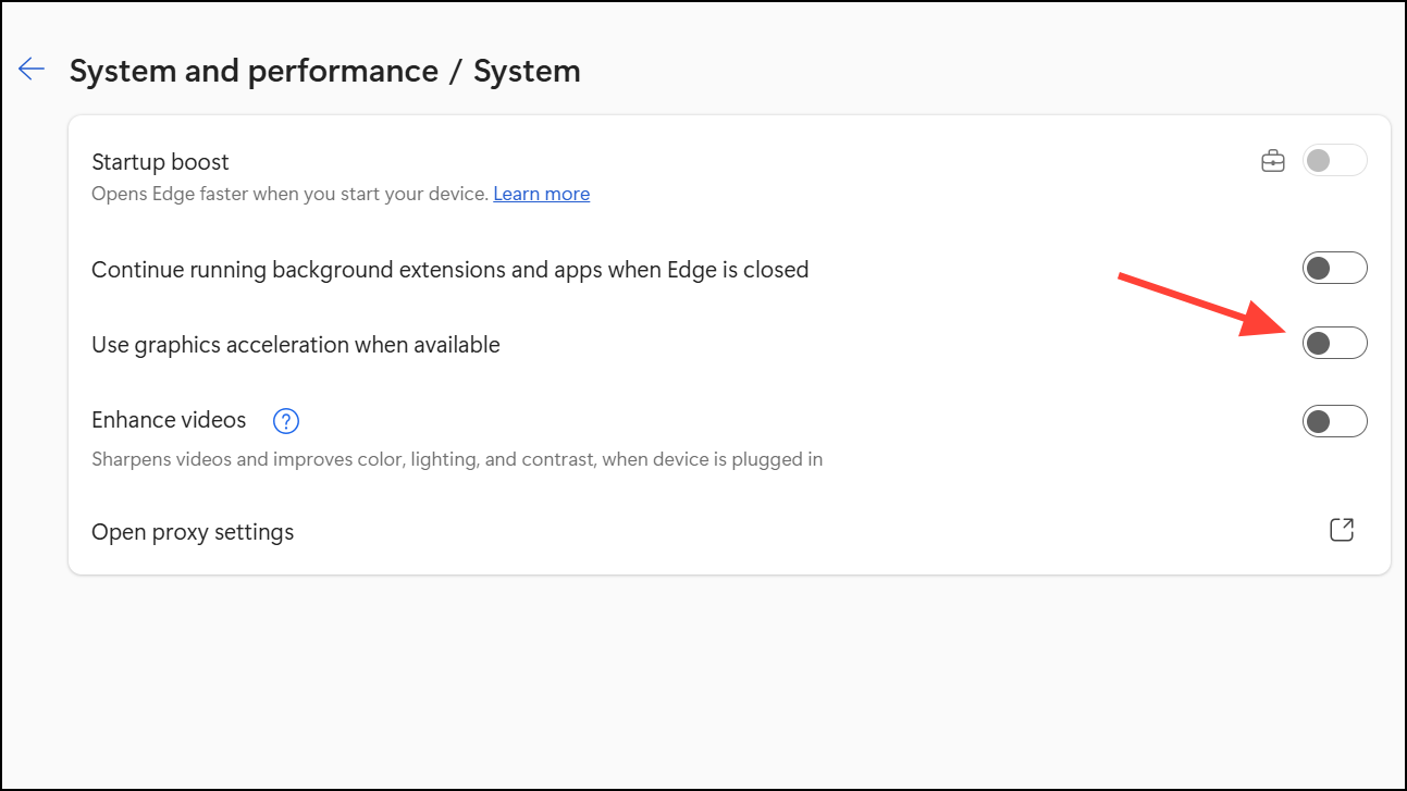 Step 3: Locate "Use graphics acceleration when available" and toggle it off.