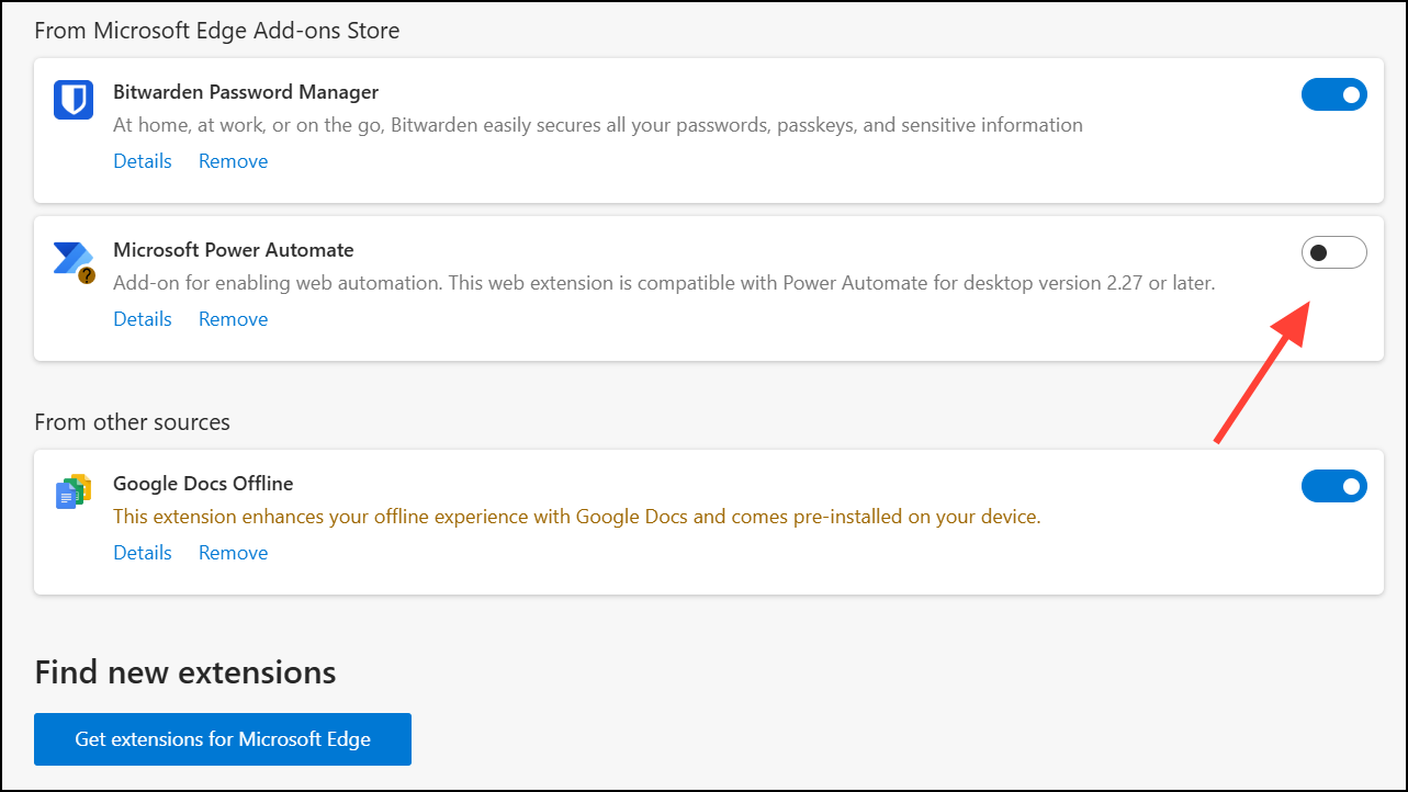 Step 1: Click the puzzle piece icon or three-dot menu in Edge and select "Manage Extensions."