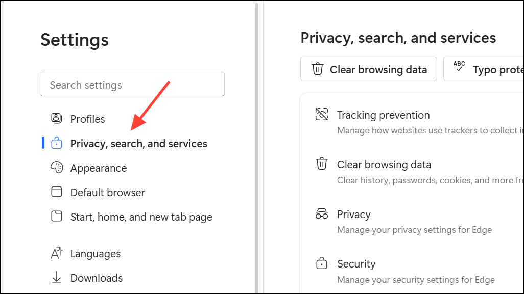 Step 1: In Edge, open "Settings" > "Privacy, search, and services."
