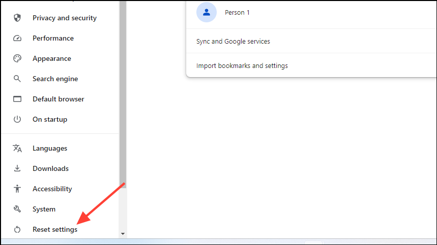 - Open the Chrome Settings page and click on 'Reset Settings' on the left.