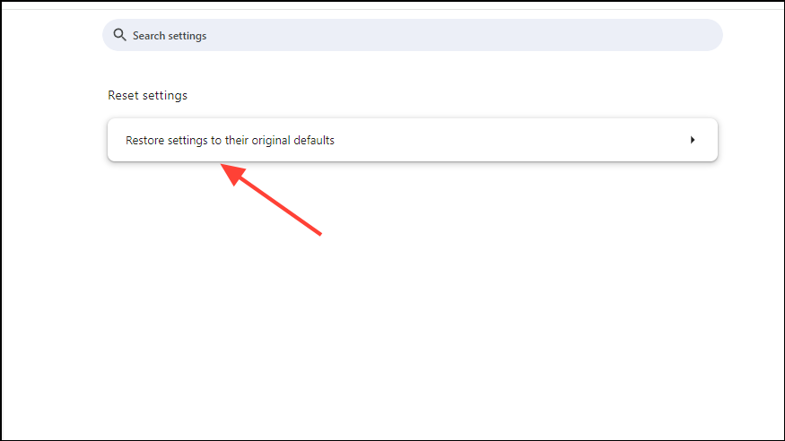 - On the Reset Settings page, click on 'Restore settings to their original defaults' and then on 'Reset Settings' when the prompt appears.