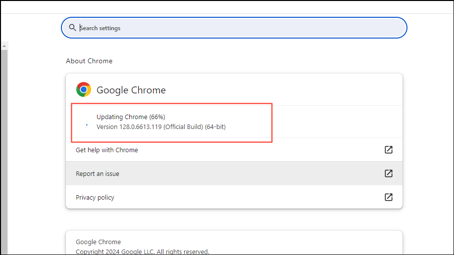 - Chrome will check for updates and install them if they are available. Once the updates are installed, close the browser and reopen it.