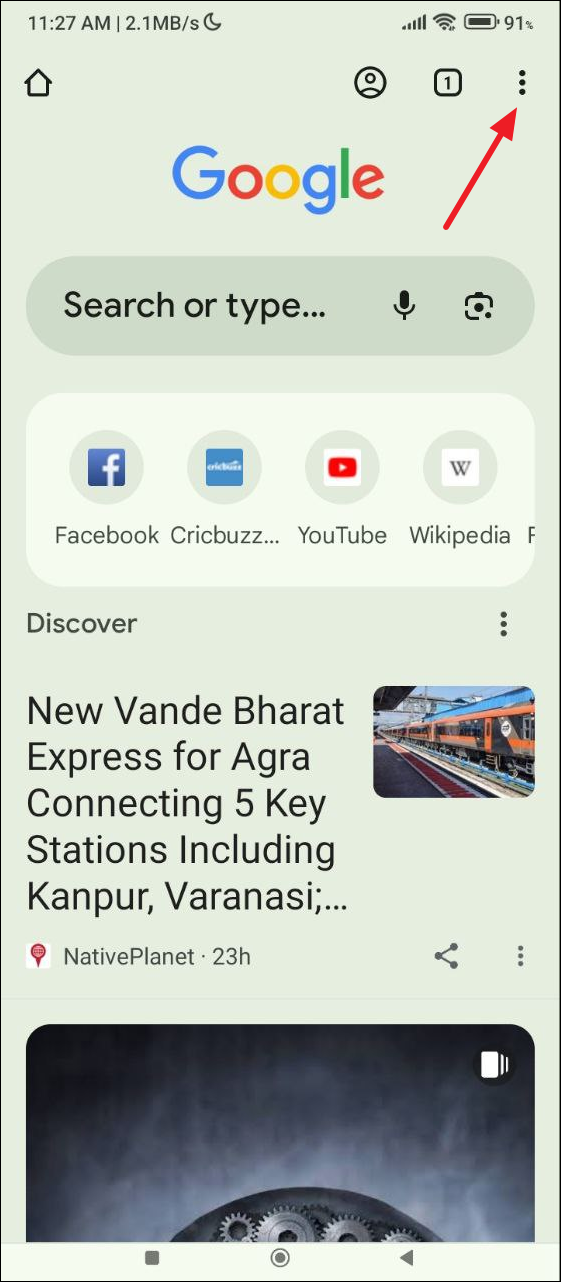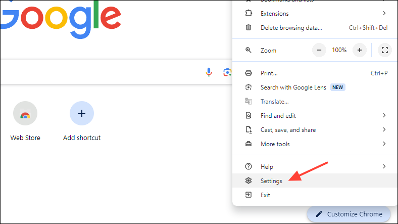 - With Chrome open, click on the three dots on the top right and then click on 'Settings' in the dropdown menu.