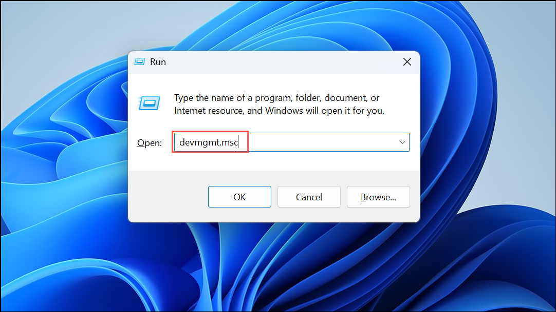 Step 1: Open the Device Manager by pressing Win + R, typing devmgmt.msc, and pressing Enter.