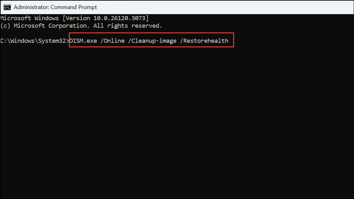 Step 3: Wait for the DISM scan to complete, then type and execute the following command: