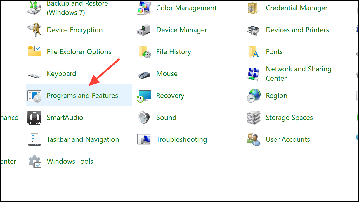Step 1: For software, open Control Panel and navigate to "Programs and Features".