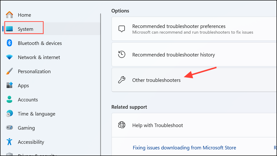 Step 1: Open Settings (Windows + I), go to System > Troubleshoot > Other troubleshooters.