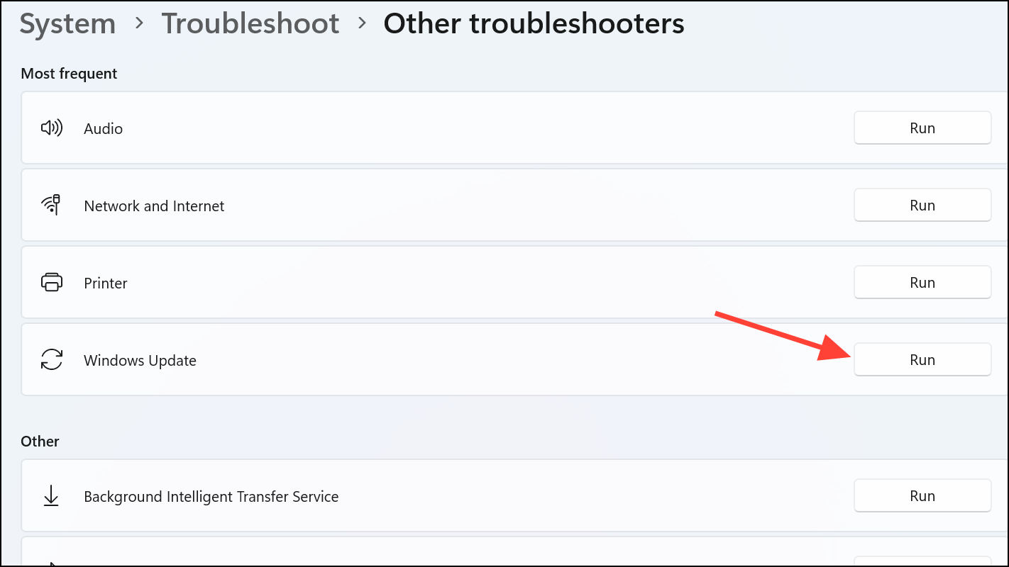 The built-in Windows Update Troubleshooter can automatically detect and correct issues with update components and configurations.