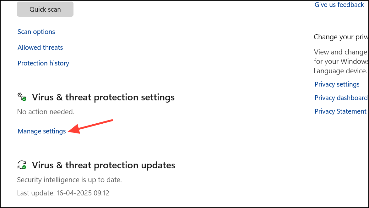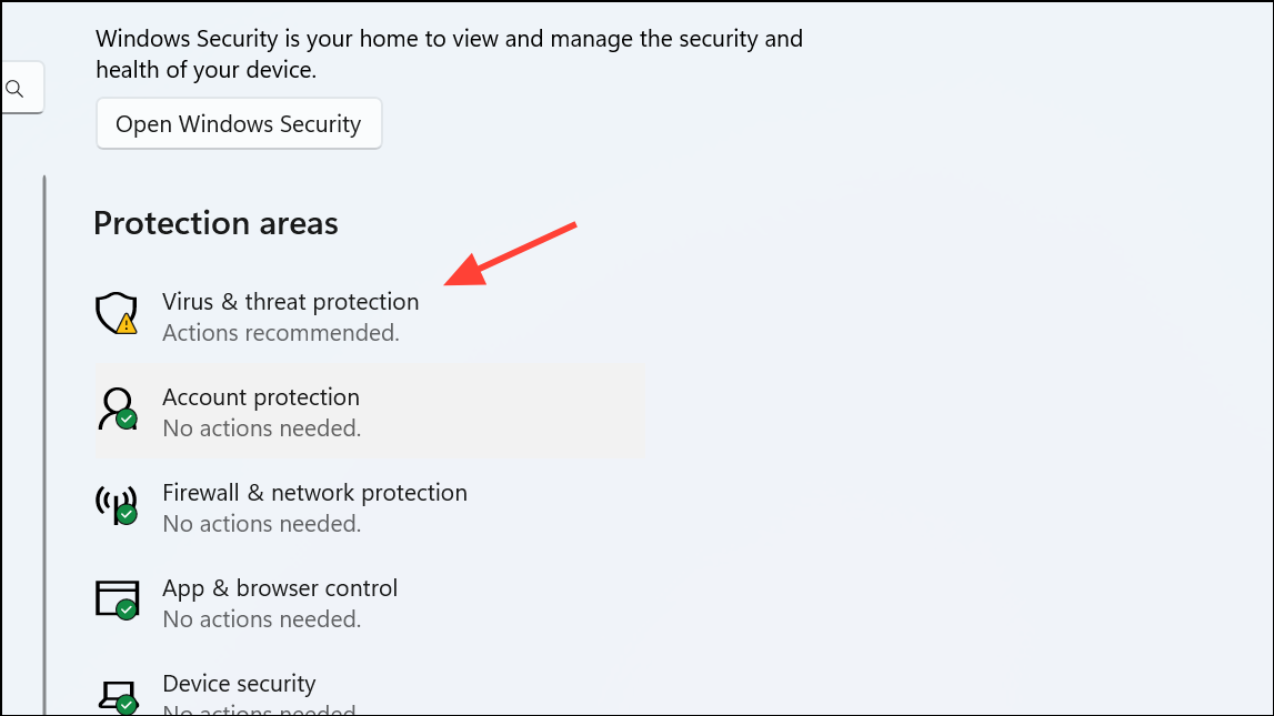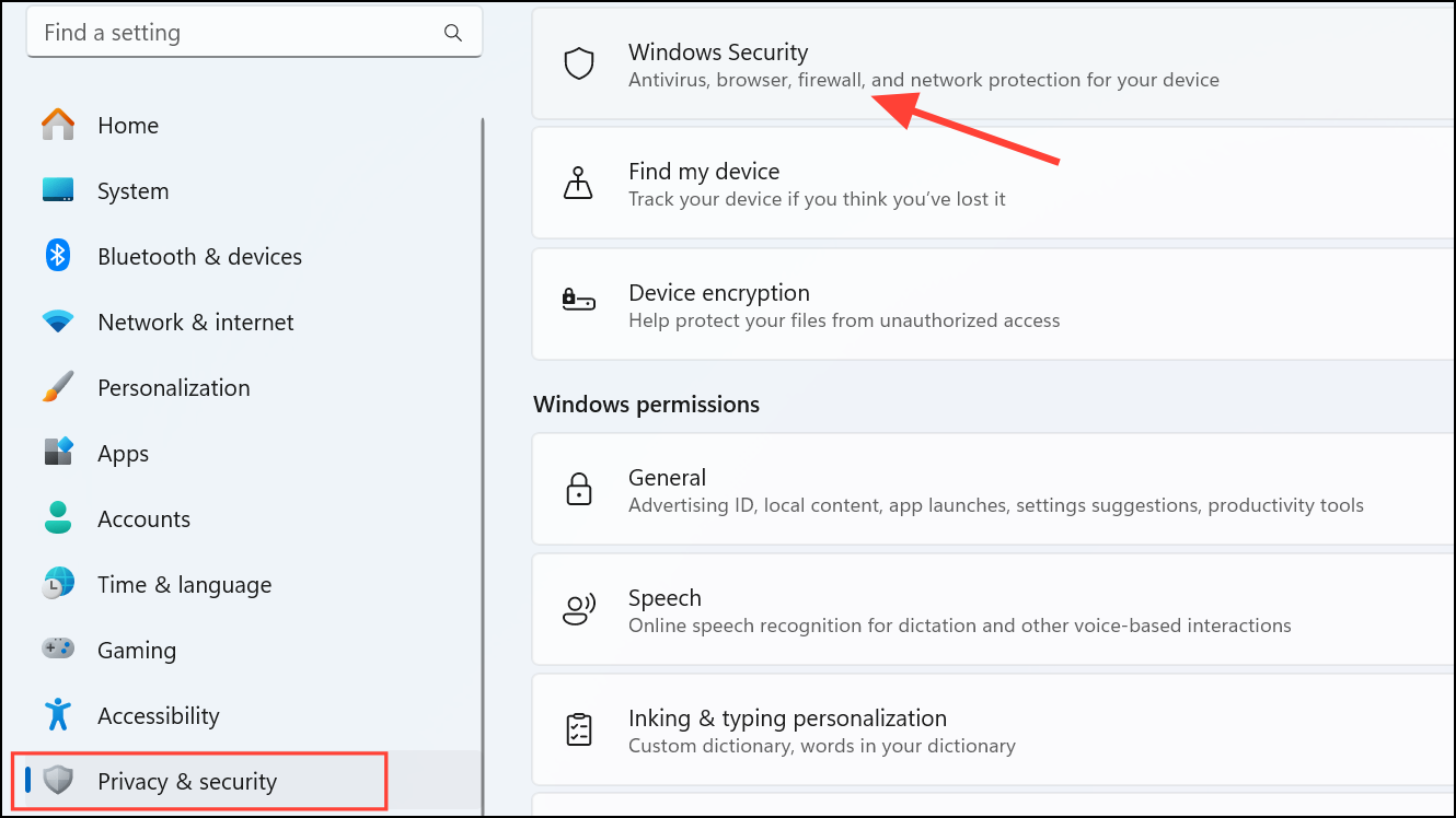 Step 1: Open Settings > Privacy & Security > Windows Security.