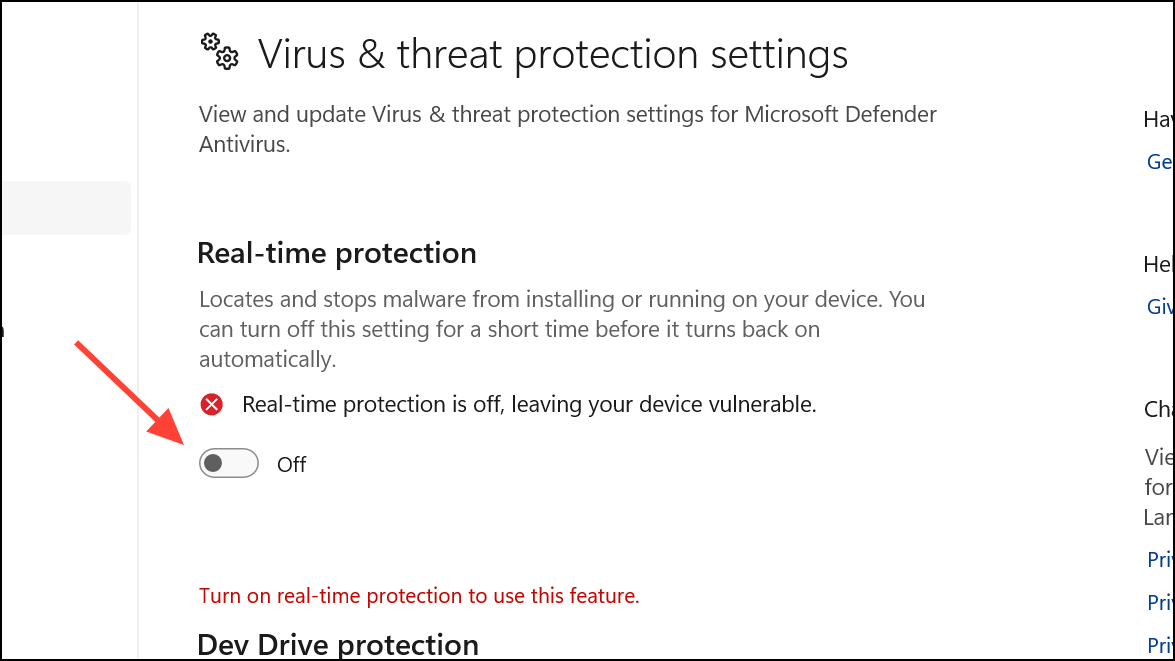 Step 3: Turn off Real-time protection. If you use a third-party antivirus, uninstall it temporarily via Control Panel.