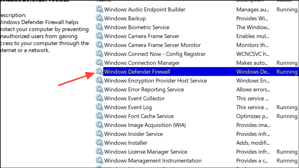 Step 2: Locate Windows Defender Firewall in the list. Double-click it to open its properties.