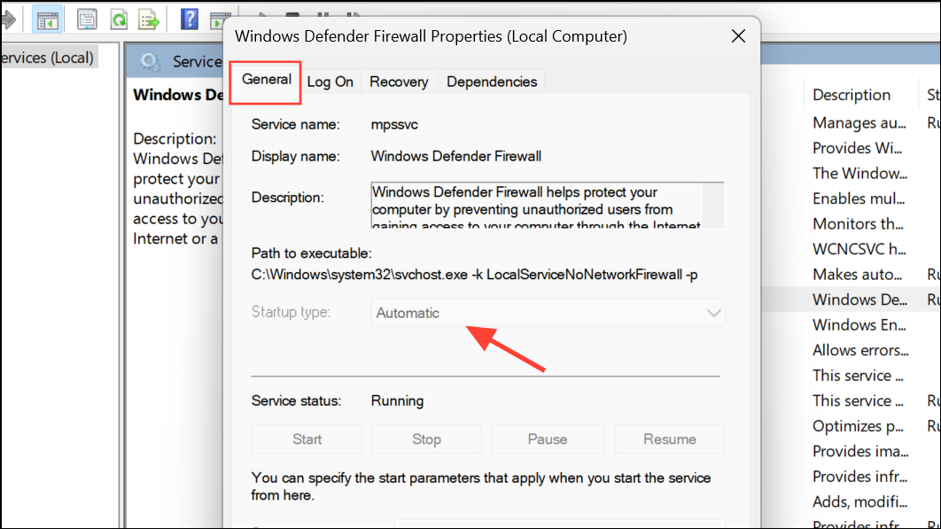 Step 4: Switch to the General tab. Set Startup type to Automatic. Click Start if the service is not running, then click OK.