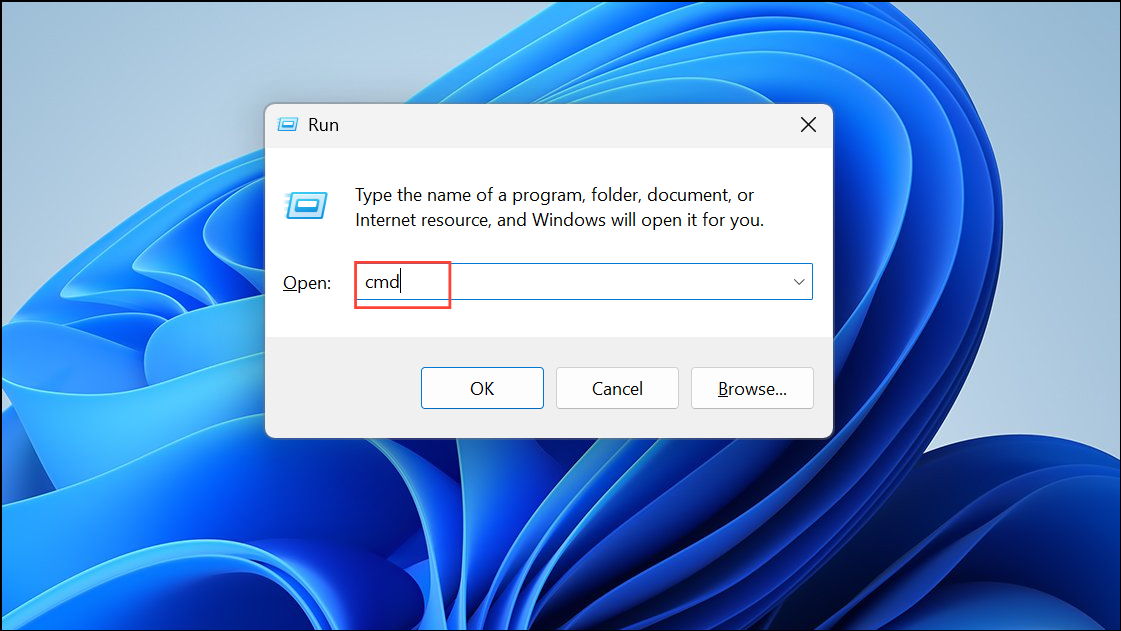 Step 1: Open the Run dialog with Windows + R, type cmd, then press Ctrl + Shift + Enter to run Command Prompt as administrator.