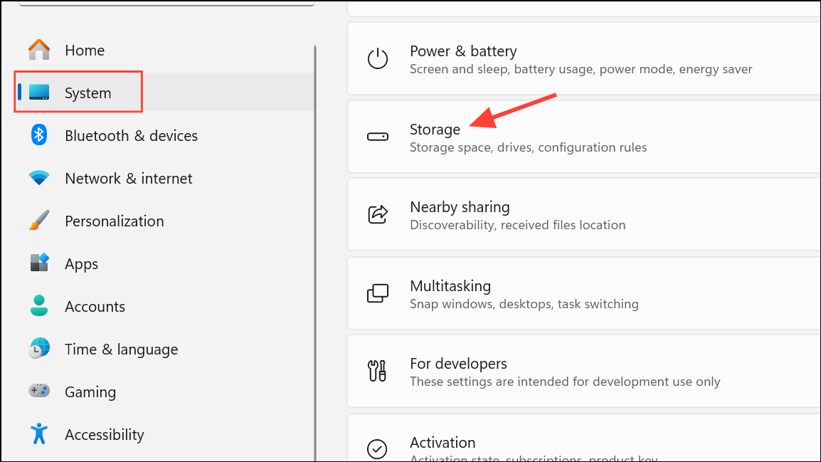 Step 1: Open Settings and go to System > Storage to view disk usage.