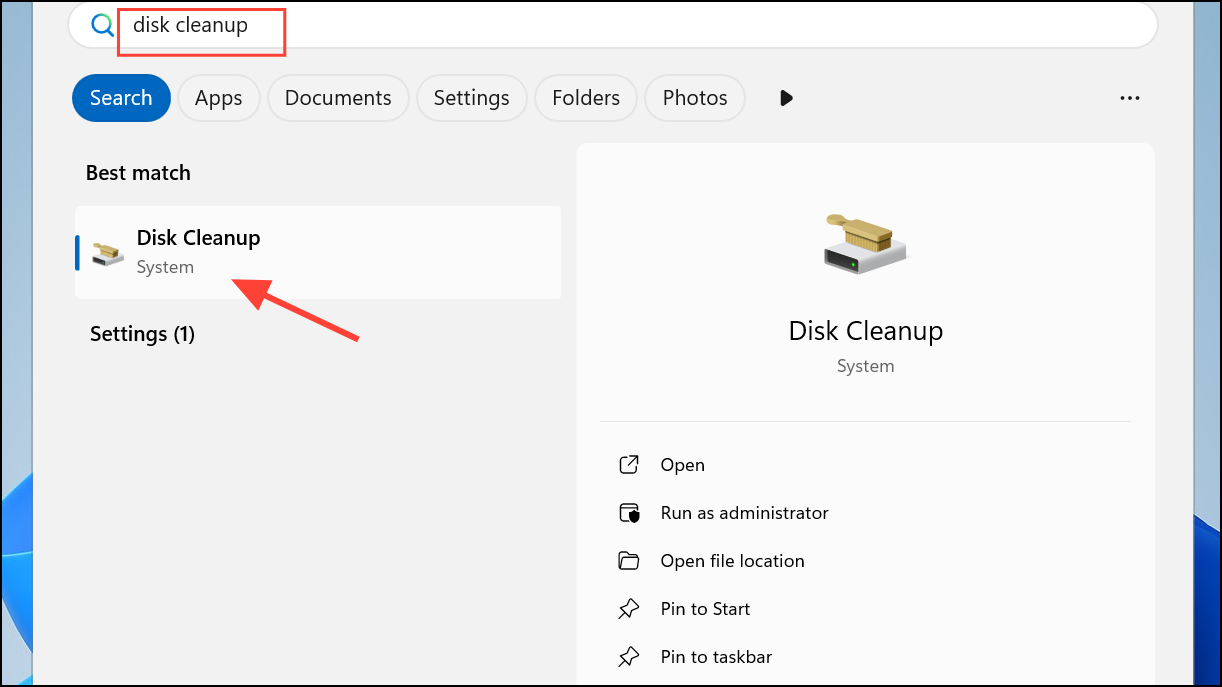 Step 2: Use the built-in Disk Cleanup tool by searching for Disk Cleanup in the Start menu. Select your system drive and follow prompts to remove temporary files, system cache, and other unneeded items.