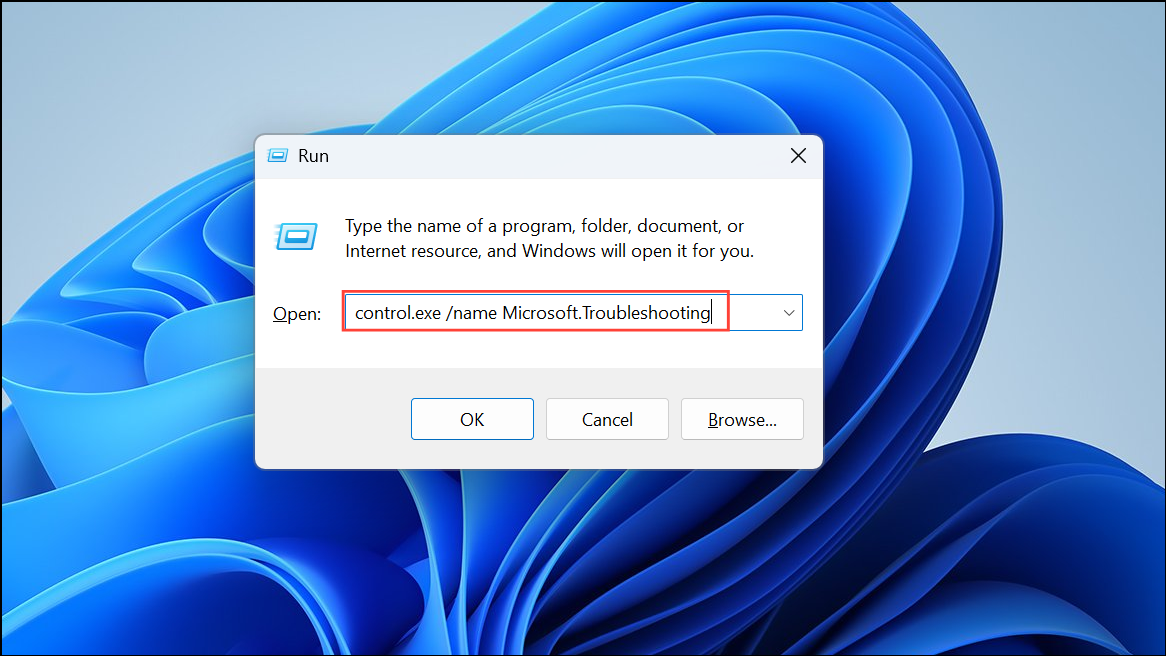 Step 1: Press Win + R to open the Run dialog box, type control.exe /name Microsoft.Troubleshooting, and press Enter.