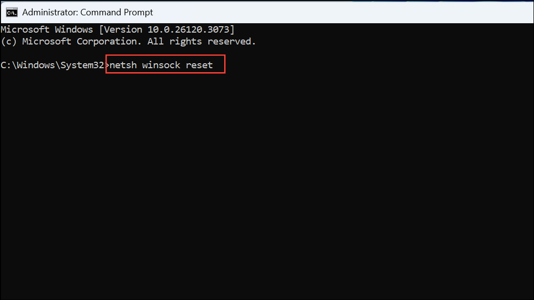 netsh winsock reset