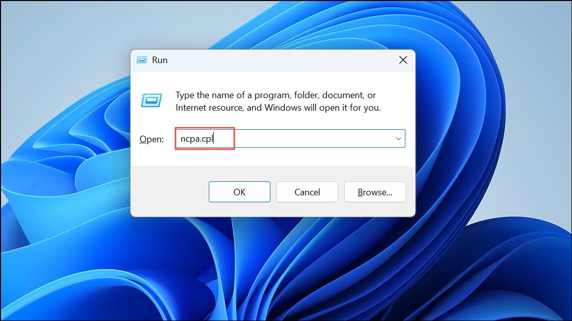 Step 1: Press Win + R, type ncpa.cpl, and press Enter to open Network Connections.
