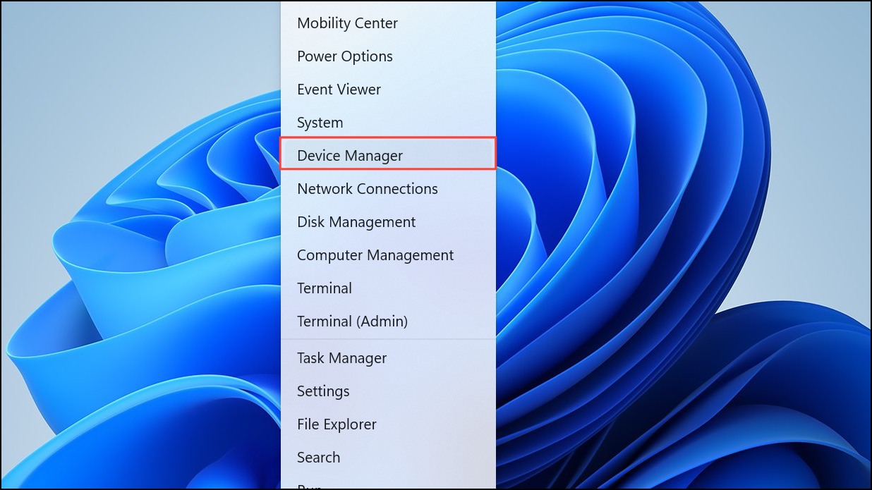 Step 1: Press Win + X and select "Device Manager."