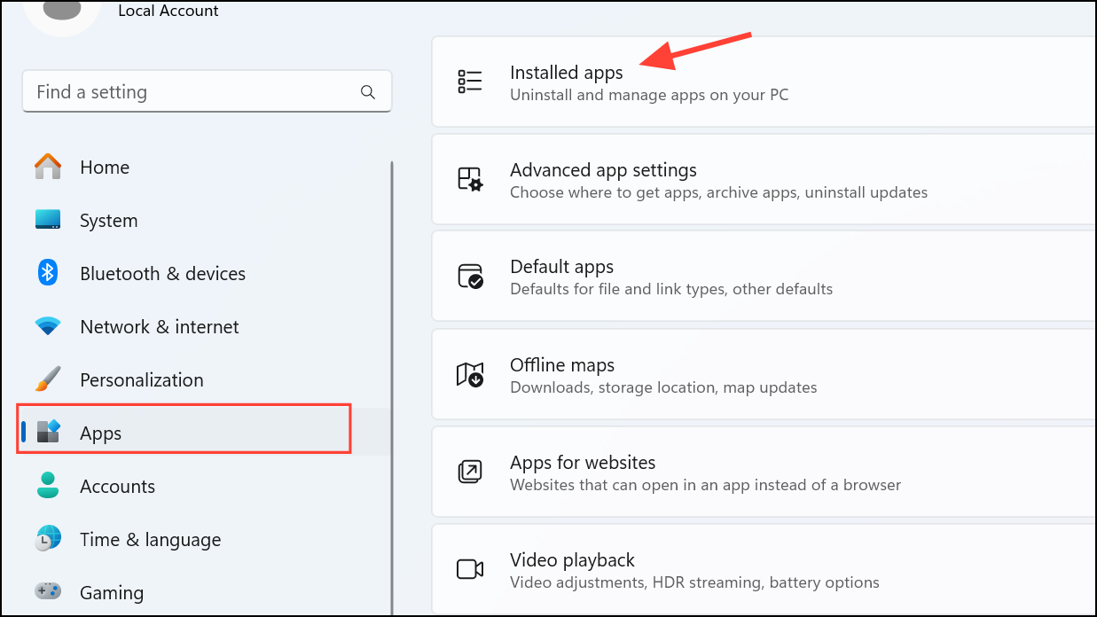 Step 2: Select "Installed apps" (Windows 11) or "Apps & features" (Windows 10).