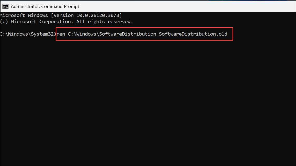 ren C:\Windows\SoftwareDistribution SoftwareDistribution.old