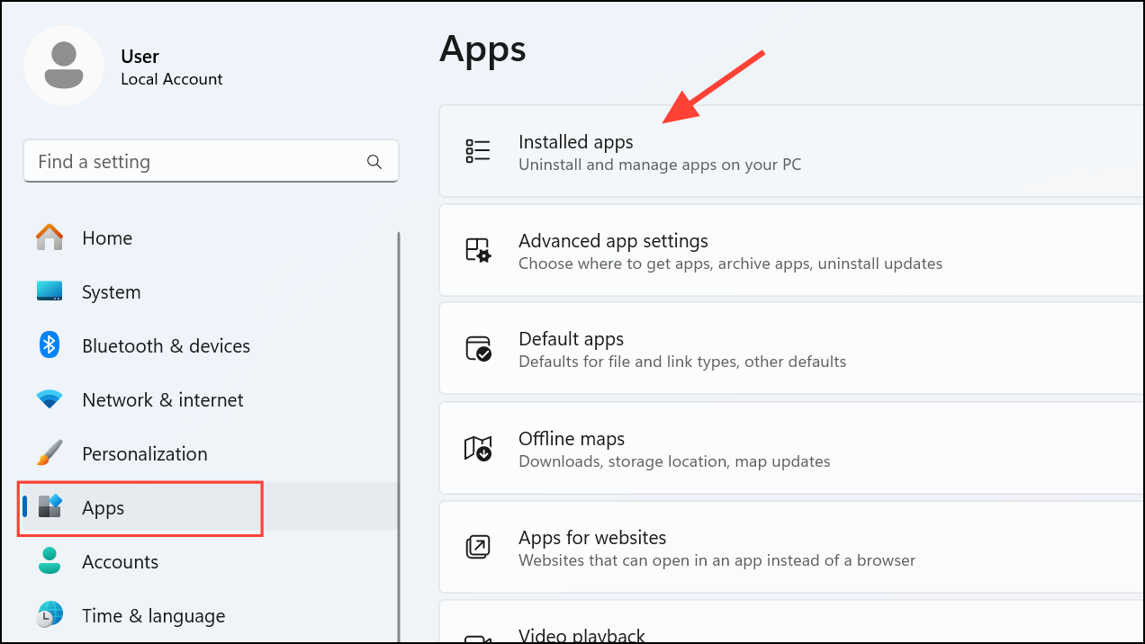 Step 1: Open the Settings app by pressing Windows key + I. Navigate to "Apps" and select "Installed apps".